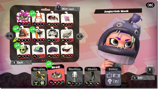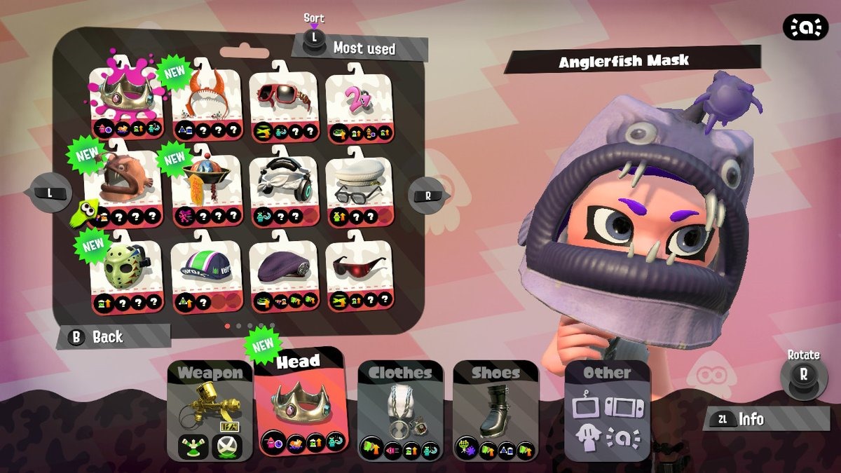 After you click the link and finish listening to Pearl and Marina’s Splatoween announcement, you will find yourself in front of a package. Opening it will give you the Anglerfish Mask, Hockey Mask, Kyonshi Mask, and Li’l Devil Horns. Each of these head items are three-star pieces of clothing with three skill slots to spill.