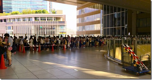 As we mentioned in earlier posts, a Kirby-themed café has recently opened in Osaka, Japan. Inside, customers can find an array of treats and merchandise all based on the Kirby series. A batch of new photos have surfaced online from various fans, giving us an even better look inside the Kirby Café and all the goodies it has to offer. First off, we get a look at the huge line of customers drawn in by the café’s opening.