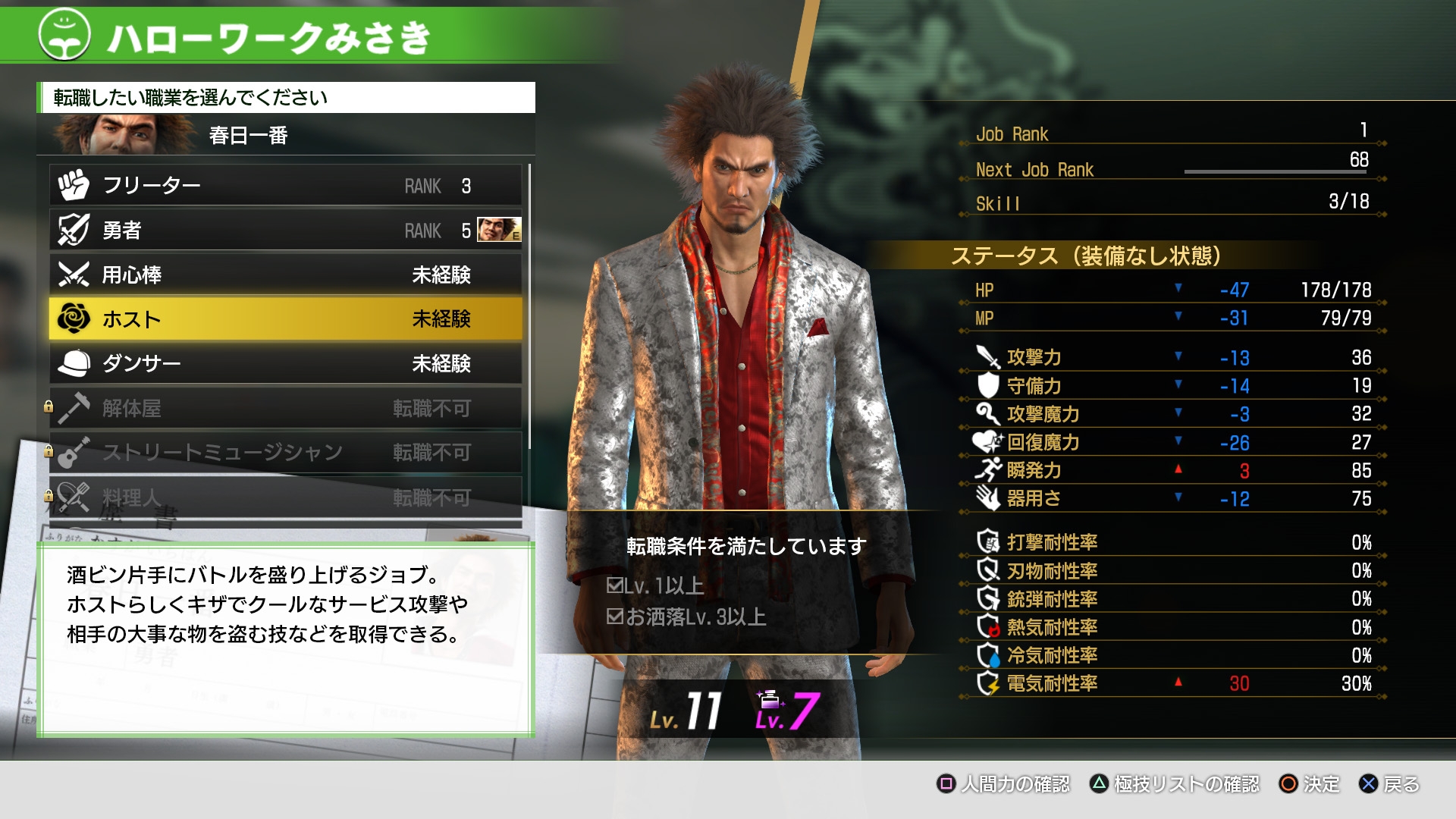 Back in October, Sega introduced the “Human Power” stats that Ichiban Kasuga will have to level up in order to unlock more job classes and more, and we now know even more about how important they are thanks to the latest news update. [Thanks, 4Gamer!] In fact, apart from being necessary requirements for other job classes, Human Power stats will directly help you in battle, by making it harder for your characters to be afflicted by status conditions. Here’s what each stat does below:
