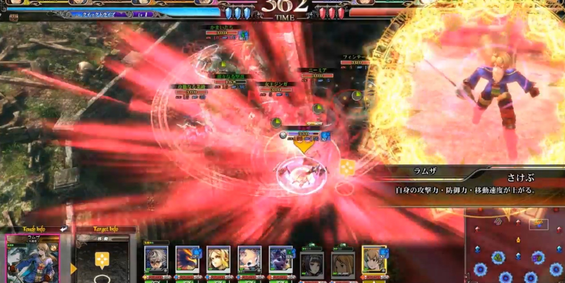 As you can see, Ramza’s Shout special makes him a one-man army, raising his attack, defense and speed.
