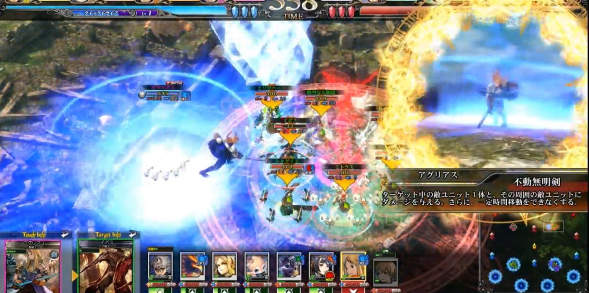 Agrias grows to immense size when she slices down with Judgement Blade, which can immobilize enemies and allow her to get to work chopping them down where they stand. Lord of Vermilion III is out in arcades in Japan. THUMB ![]()