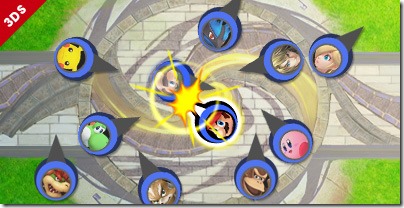 One of the side game modes in Super Smash Bros. for 3DS is “StreetSmash”. This is a mode where you control a character token and try to knock other tokens off the map. Enemy tokens are gathered using StreetPass and will move automatically, trying to knock each other (and you) off the map. You control your token using the Circle Pad. Tilting it in a direction lightly moves slowly, while pressing harder moves you faster. As you bump into other tokens, you’ll build up damage on both your token and on the enemy’s. Once you’ve built up enough damage on their token, you’ll be able to launch them off the map by bumping into them. More details on StreetSmash can be found here. Look out for Siliconera’s playtest of Super Smash Bros. for Nintendo 3DS later this week.