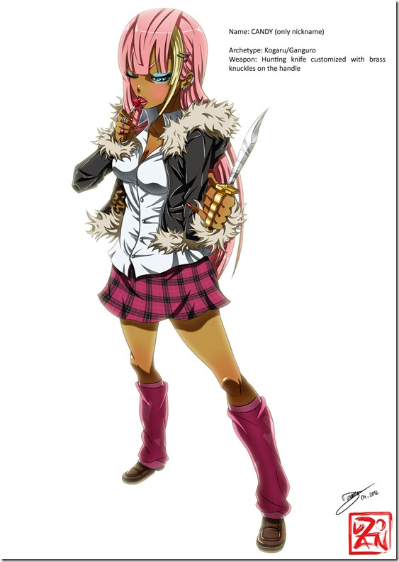We picked this entry was for a couple of reasons. First, the amount of detail in this piece is just incredible, right from the lollipop to the custom brass knuckles on the knife. It’s got personality. Beyond that, however, it’s a well-recognized archetype and it also fits right into the personality of Phantom Breaker itself. Congratulations! Dzoan sent in a few other entries as well, two of which were also considered for the winning spot: