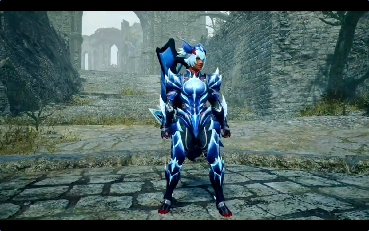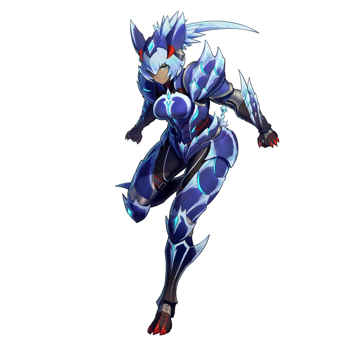First, here is what the two pieces of what the team had in mind when creating the concept art for Monster Hunter Rise Sunbreak Lunagaron hunter armor. In each case, they are blue, full-body suits with white accents. The women’s version also appears to have wolf ears, while the men’s style involves a helmet. (Unlike in Monster Hunter Wilds, sets were gender-locked.)