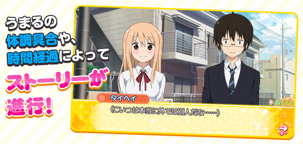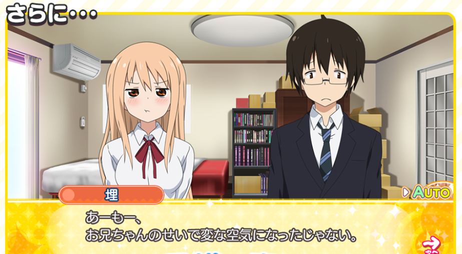 The story will change depending on what kind of choices you make. The above screenshot shows Umaru being a little disappointed in her brother Taihei.