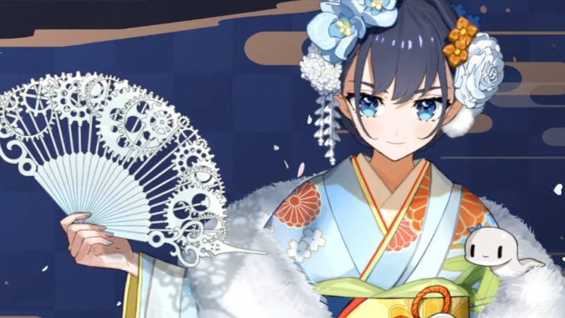 Artists Tohsaka Asagi and Soy designed Ceres Fauna’s flowery kimono. Fauna’s hair features twin braids, as well as woven flowers and an apron.