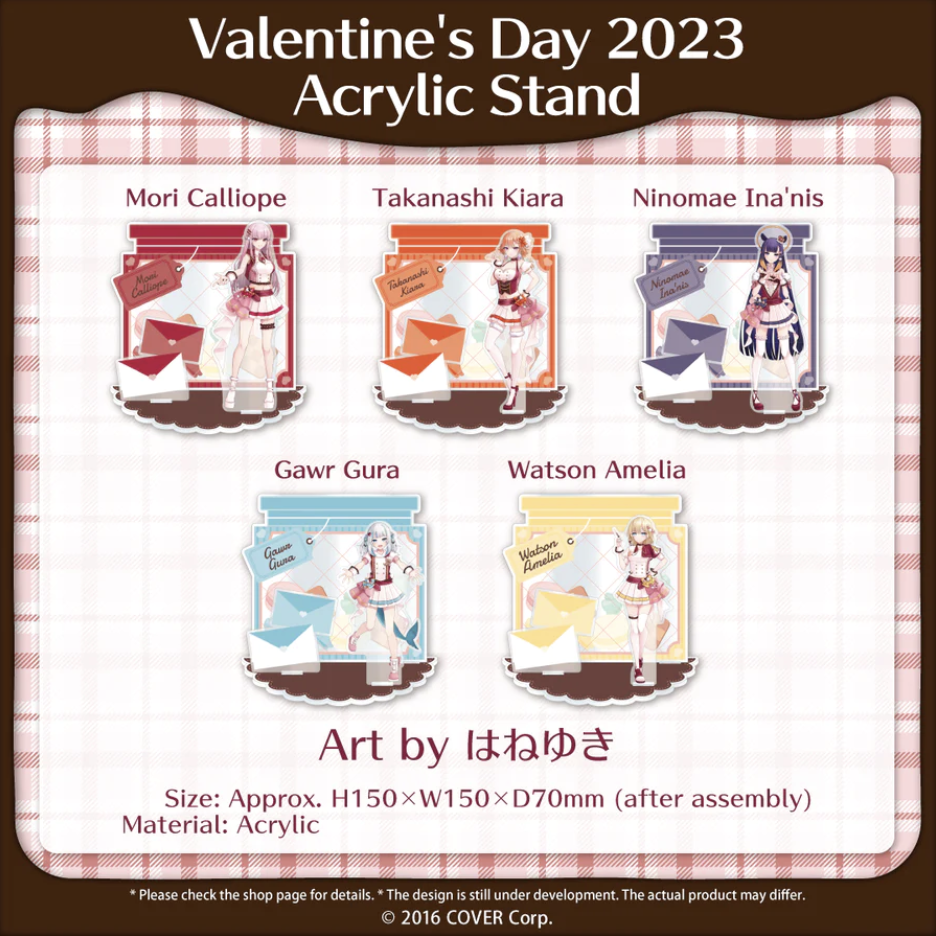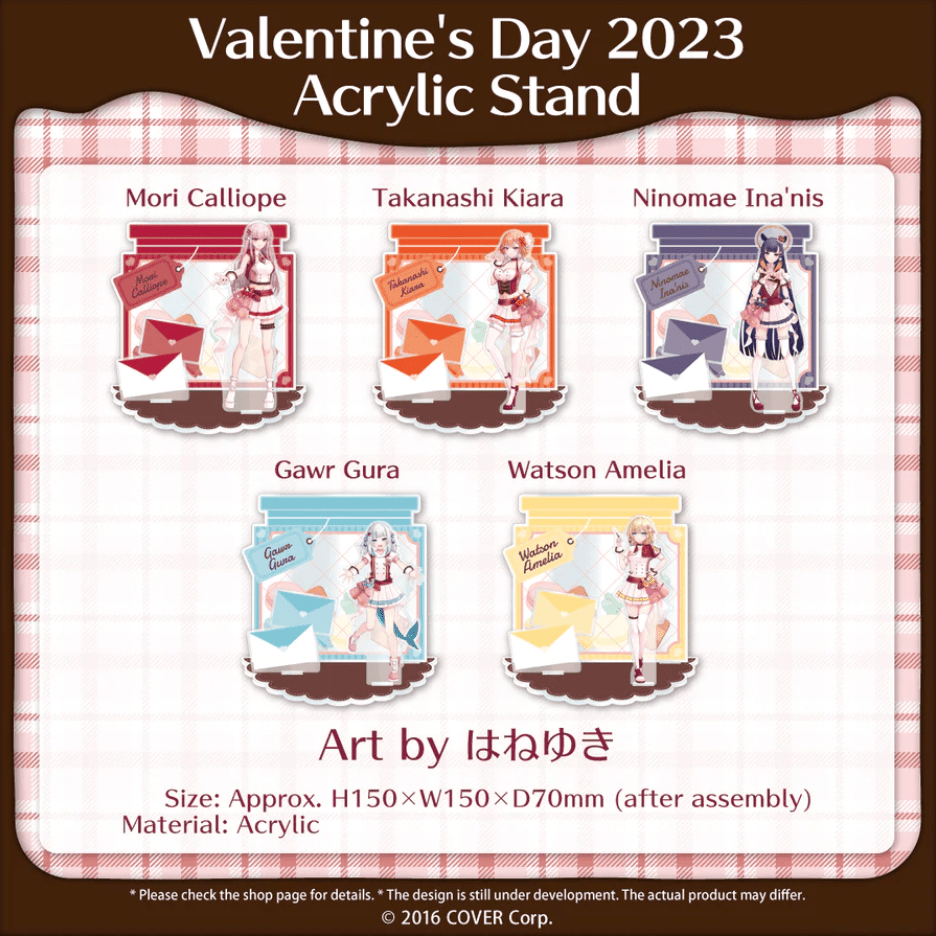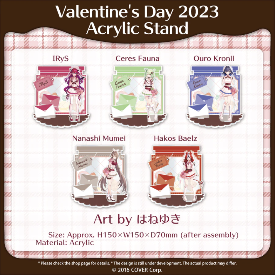 The Holostars English Tempus Valentine’s Day 2023 and Hololive English Valentine’s Day 2023 merchandise is expected to ship by or before late July 2023.