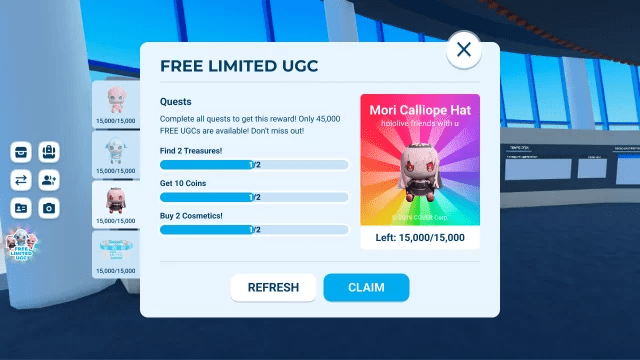 The government bureau will set a number of quests that players will have to complete in order to receive the hats. The quests will involve buying a number of cosmetics from the lobby shop, exploring the official Tokyo space in Roblox, and collecting coins after each Hololive Vtuber hat has been released.