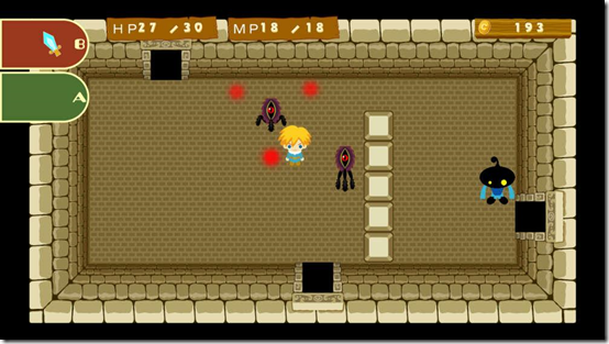 In Fenak Village Story you play a sword wielding hero that explores top down dungeons filled with switch puzzles. Sound familiar? While the style and even the puzzles are reminiscent of the NES classic there are some differences. Instead of hearts you have HP and there’s a MP meter.