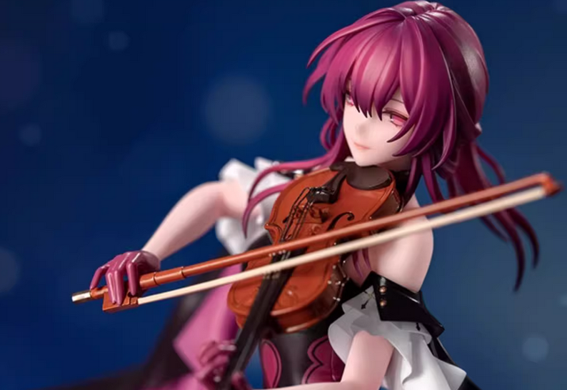 This Kafka figure dresses her up in an elegant evening gown that has some elements of her usual outfit from the game. There are spiderweb motifs all over the bottom half, as well as ruffles and belts. The way the sleeves look, as well as the impression it gives her silhouette, is reminiscent of how she wears her jacket like a cape. As for how the figure is posing, Kafka looks like she’s playing the violin, which is an instrument she seems proficient in based on idle animations and cutscenes from Honkai: Star Rail.