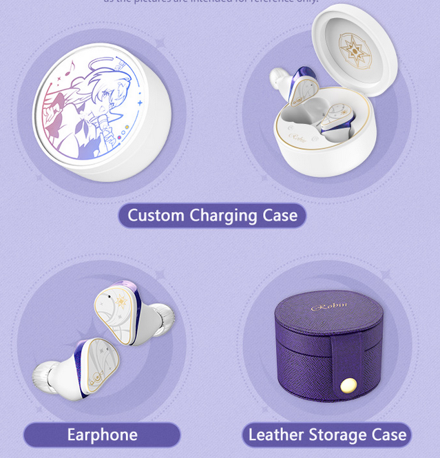 The Honkai: Star Rail Robin earbuds from Moondrop are white, blue, and gold. There is a star-like design on the right earbud, and a starry treble clef on the left one. You can charge them via USB-C, and they can last about 9 hours per charge. They’ll come with a charging box that has Robin on the lid, as well as a leather carrying case that has her name on the cover. Aside from acting as earbuds, they can double as microphones. The earbuds cost $99.