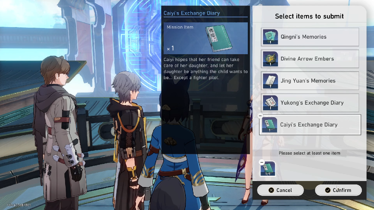 - At the end, when speaking with Yukong, Qingni will find herself at a loss for words. So you have to help her! Present her Caiyi’s Exchange Diary to hep her convince Yukong.