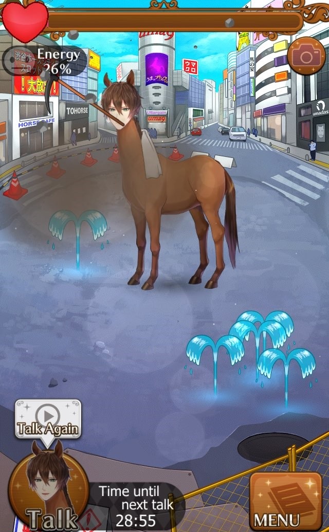 It all starts with a clever story that is constantly winking and nodding at the player. My Horse Prince knows exactly how ridiculous it is. It knows there’s absolutely no possible way to have this make sense, so it doesn’t try too hard to explain everything away. Your avatar was born in the year of the horse, according to the Chinese Zodiac, so that’s why this horse has a human face and behaves like a person. Except, he’s apparently also getting jobs and able to find his way around the world, so maybe others see him for who he is? It doesn’t matter. He needs an owner, our avatar is talked into it, and now she has a horse stalker/boyfriend.