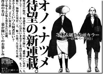 The series will kick off with a whopping 56-page pilot chapter. Anime News Network have a translation of the announcement that reads: “The story is set in the Edo period and centers around two men at Kawasaki Daishi, a heavily visited temple south of modern-day Tokyo. The first man is cheerful, but the second man glares at him with a cold stare. Both are up to something that will be revealed as the story begins.”