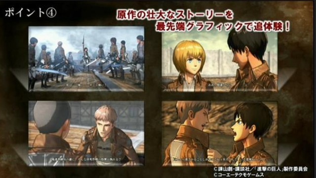 The above shows some in-game screenshots that depict some of the story surrounding Eren and his comrades. Attack on Titan is in development for PlayStation 4, PlayStation 3, and PlayStation Vita. Koei Tecmo aim to release the game this winter in Japan, and in 2016 for the west.
