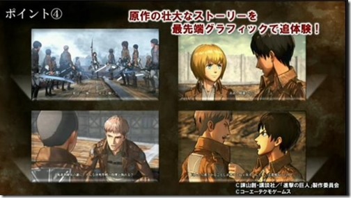 We recently got a glimpse of Attack on Titan’s 3D Maneuver Gear action in its Tokyo Game Show 2015 trailer, and the developers shared a little more on how the story will be told. [Thanks, Zaregoto.] As previously reported, the new Attack on Titan game includes the entire story that we’ve seen from the anime thus far, so those of you who’ve yet to finish or even watch the anime will get to enjoy the game and the story it will tell.