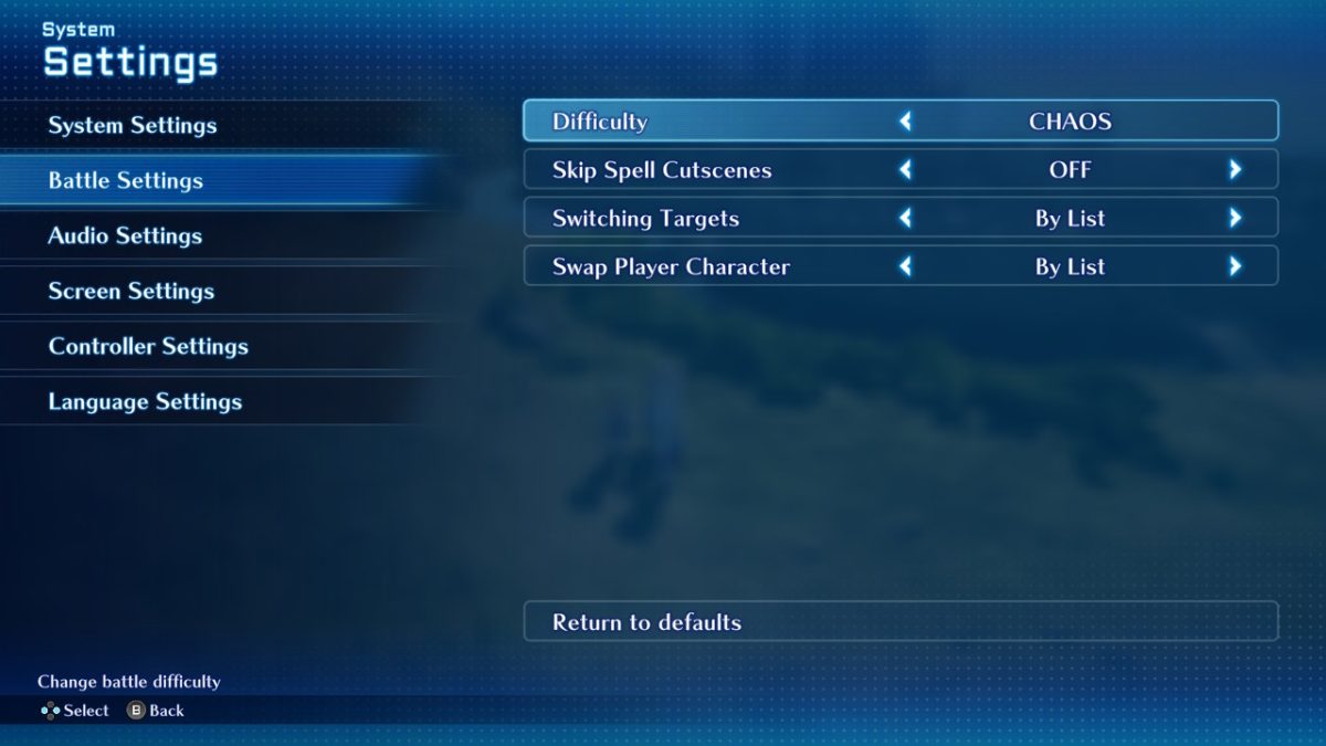 Fortunately, despite the overwhelming challenge in this mode, it is possible to switch to as long as you update to version 1.1. You can create a new game with the Chaos difficulty or even switch in the battle settings in the menu of an existing file. It is up to you how to go about it. Personally, I recommend trying this mode on a New Game Plus since you can now carry over your levels.