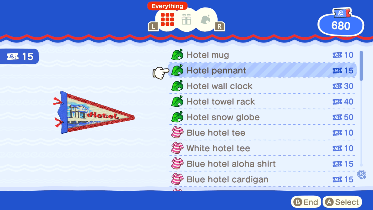 As you complete each room in the hotel in Animal Crossing: New Horizons, you’ll earn Hotel Tickets. These can be used to purchase a range of exclusive items, with the catalog expanding over time. Initially, you’ll be restricted to a few hotel themed items, but as you take part in hotel activities, the range increases. These additional items include a selection of retro Nintendo consoles.