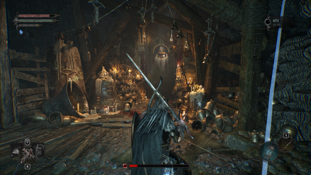 Once you are outside go onto the ledge. Go to the left until you reach a shack along the wall with a bell at its door and enter the tunnel. At the end of this tunnel, there will be a ladder beside a good location to plant a Vestige Seed due to its safety, accessibility, and depth into the tunnel.