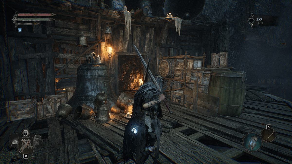 Once you are outside go onto the ledge. Go to the left until you reach a shack along the wall with a bell at its door and enter the tunnel. At the end of this tunnel, there will be a ladder beside a good location to plant a Vestige Seed due to its safety, accessibility, and depth into the tunnel.