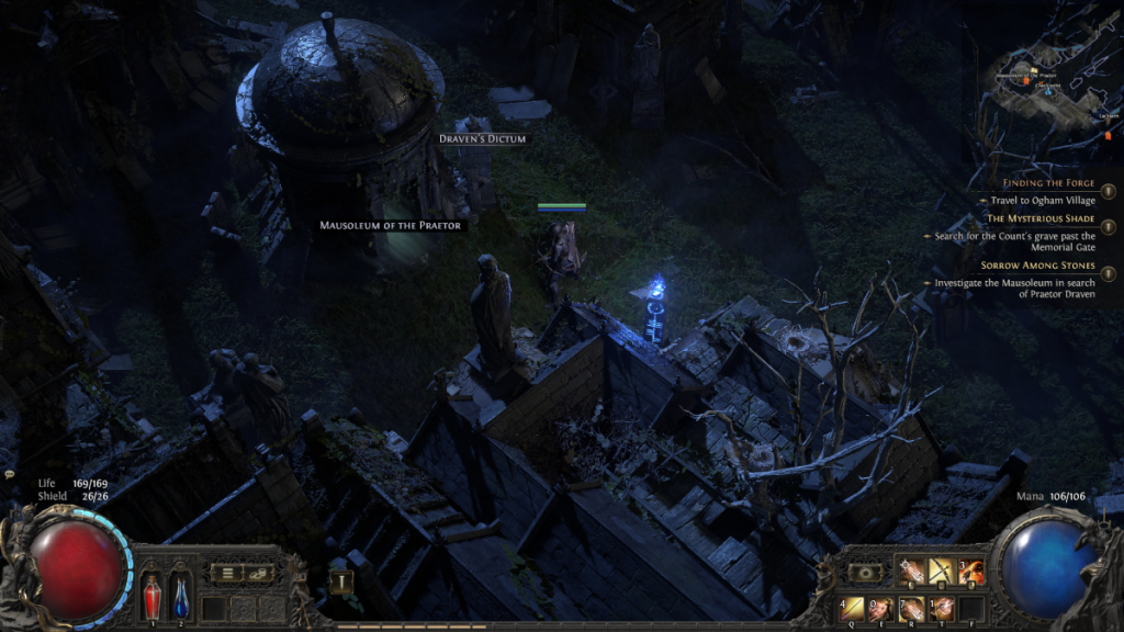 Draven can be found in a sub-dungeon called the Mausoleum of the Praetor, somewhere within the Cemetery of the Eternals. As the maps are procedurally generated there is no fixed location for it to spawn, but you’ll know it by the round entrance building and the checkpoint outside. If you instead find the Tomb of the Consort, the Mausoleum’s sister dungeon, it will be worth stopping to clear that first so you don’t have to search for it again later.