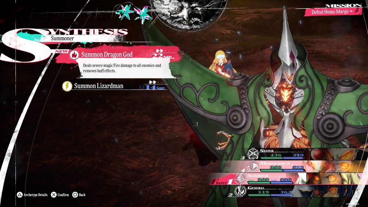 In addition, you want Eupha on your team for this fight. Since she is the only one with Summoner at this point in time, she has access to the exceptional Summon Dragon God synthesis skill. This deals severe fire damage to all enemies in this fight and will grant you an extra turn action at the same time. Use this as much as you can as you focus primarily on Homo Margo while ignoring any possible adds and this fight should be fairly straightforward.