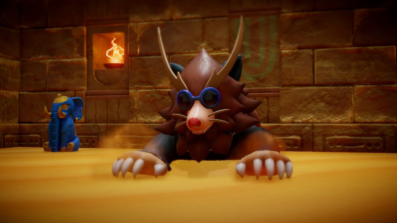 Eventually, Mogryph will attempt to charge towards you. While the mole prepares his attack, dash to one of the four statues in the corner of the room. When Mogryph begins to head towards you, run away from the location so it headbutts the statue instead of you. If done correctly, Mogryph will become unconscious. Switch into Swordsman mode and attack him as many times as possible.