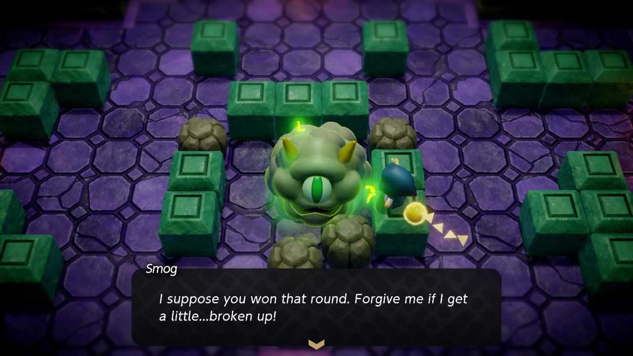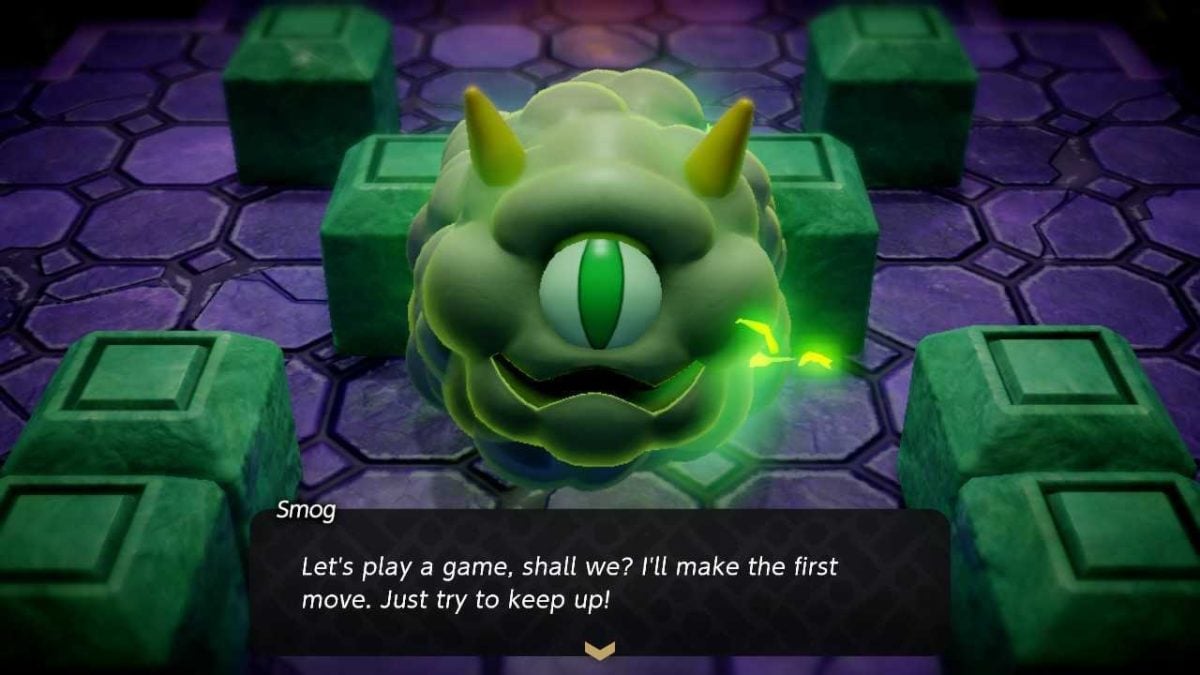 The actual Smog fight involves the boss eventually spreading cloud parts of itself all over the arena. You need to basically corral the parts so Smog becomes whole again. This means using the rocks around the area, as well as echoes of them, to try and get the boss and any stray parts in the same area so they combine again.