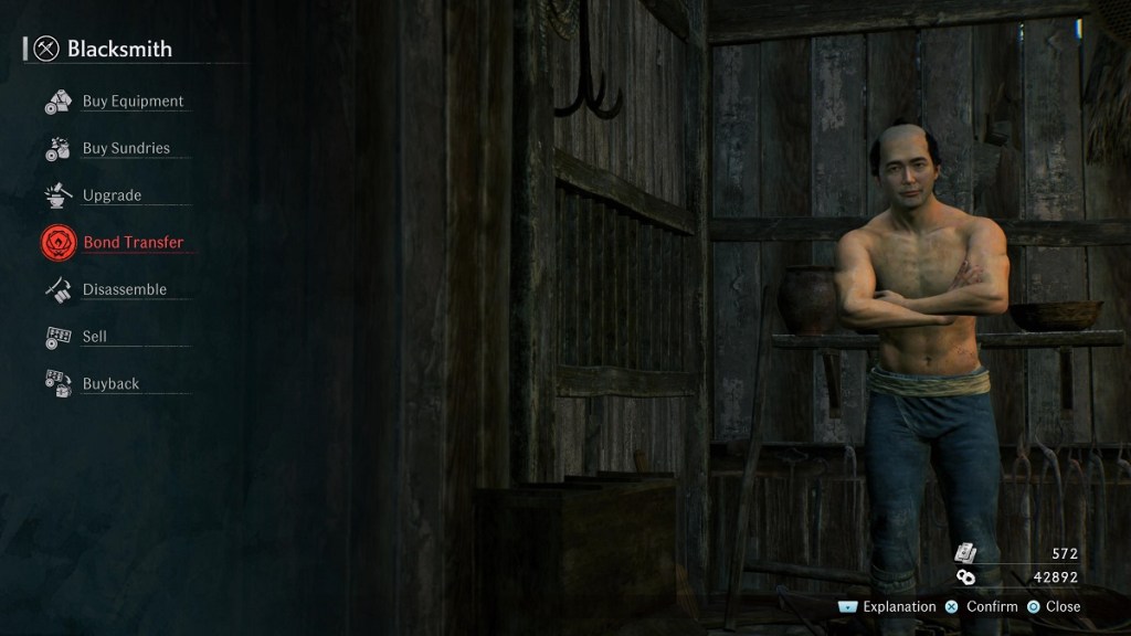 The first step in executing a Bond Transfer is obtaining a Bond Jewel. These valuable items can be purchased from merchants, found in chests, or earned as completion rewards. Once you have the Bond Jewel, take it to any blacksmith. You should see the option for Bond Transfer right on the main menu.