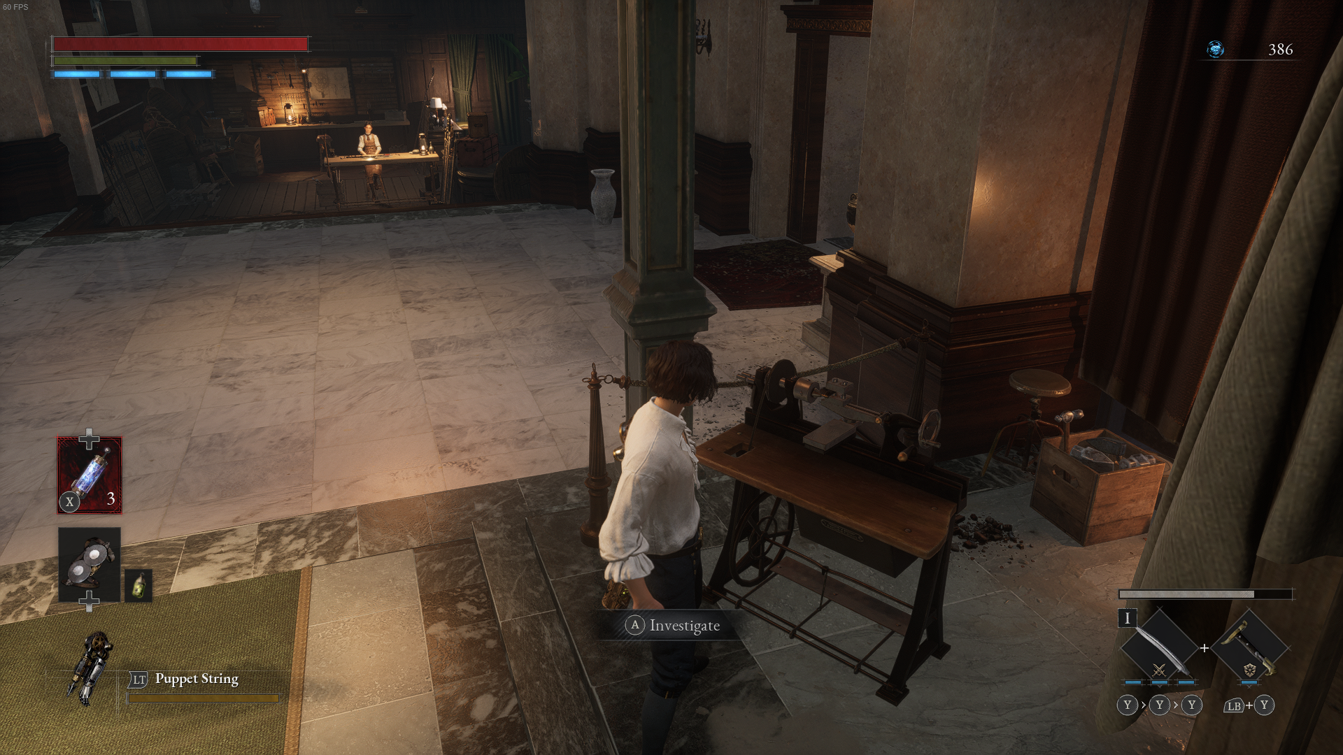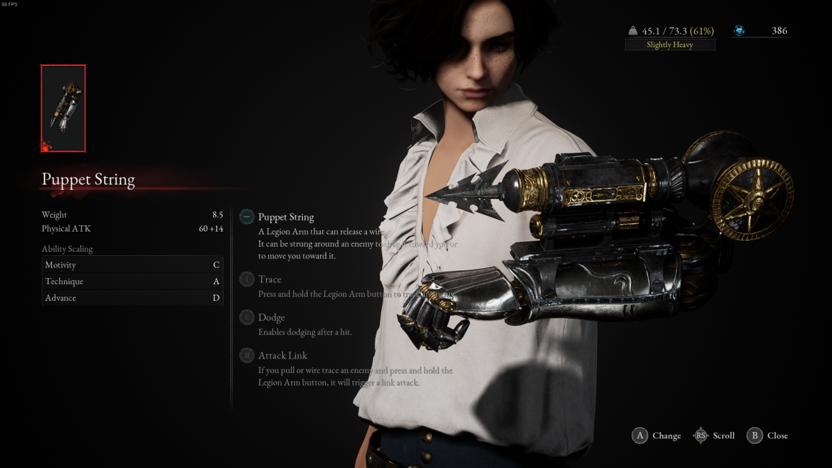 You begin the game with the simple, physical damage dealing Left Arm of Steel Legion Arm, but after you beat the Parade Leader Puppet and enter the Hotel Krat, you can receive the Puppet String from Eugénie. The new arm is automatically equipped, but if you decide after trying it out in the garden that you prefer the brutal simplicity of your original one, you might be a bit stuck as to how to change it. Attempting to change it in the equipment menu will only warn you that it “cannot be changed here.” Meanwhile, a loading screen tip will tell you that modifications can be made with a Venigni Craft Machine, but where such a machine is and what it looks like is left unhelpfully vague.