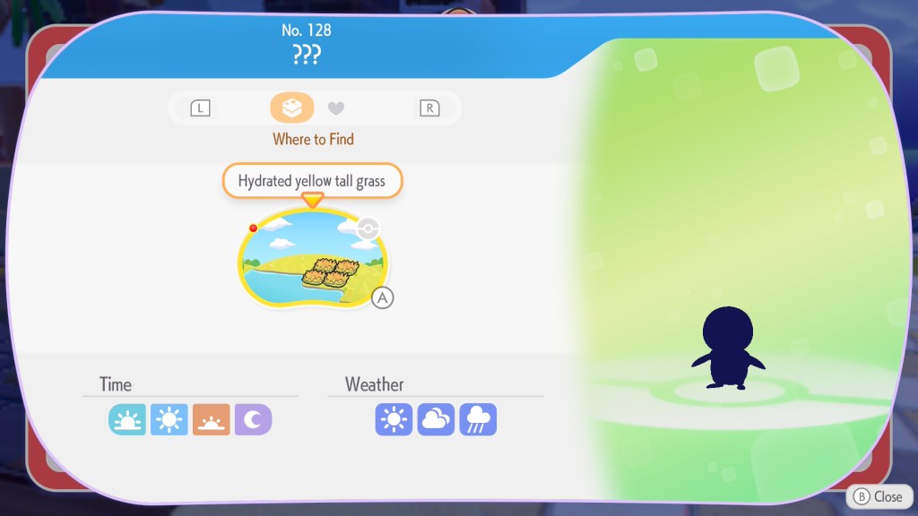 There’s a good chance you’ll already have set it up prior to this, which will make the next step easier! Piplup will move into Hydrated Yellow Tall Grass. This means four grass spots (made with Leafage) next to water. After having the conversation with Meowth and setting up a spot, it should onl be a few minutes before the water starter moves into the habitat.
