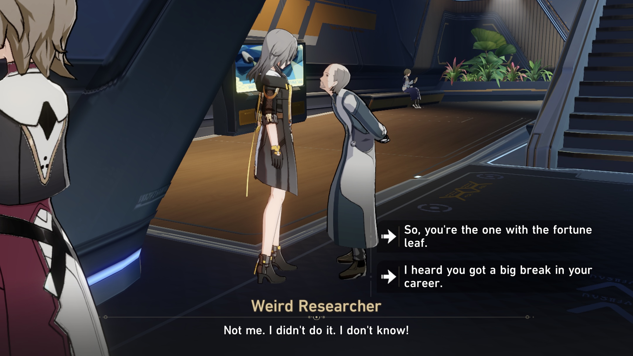 To find out the truth behind the “Fortune Leaf” urban legend, head down to the Herta Space Station Base Zone. Again, there’s a yellow highlighted area on the map, and you’re looking for one person with insight about the Fortune Leaf. You want to talk to the Weird Researcher. (There are two other people there who also will discuss the “ghost story,” but offer no valuable information.) After talking to this NPC, you’ll learn how they really got the promotion. If you do want to talk to the other random people before him for extra insight and flavor text, look for the Researcher at a Loss and Sad Researcher characters. Here’s where you can find the Weird Researcher to complete Honkai: Star Rail Space Station Ghost Stories: Fortune Leaf: Head back to Adler at the Storage Zone to explain what happened. You’ll get Adler’s Research Report on Ghost Stories III and 5,000 Credits. Honkai: Star Rail is available for PCs and mobile devices, and PS4 and PS5 versions are in development.