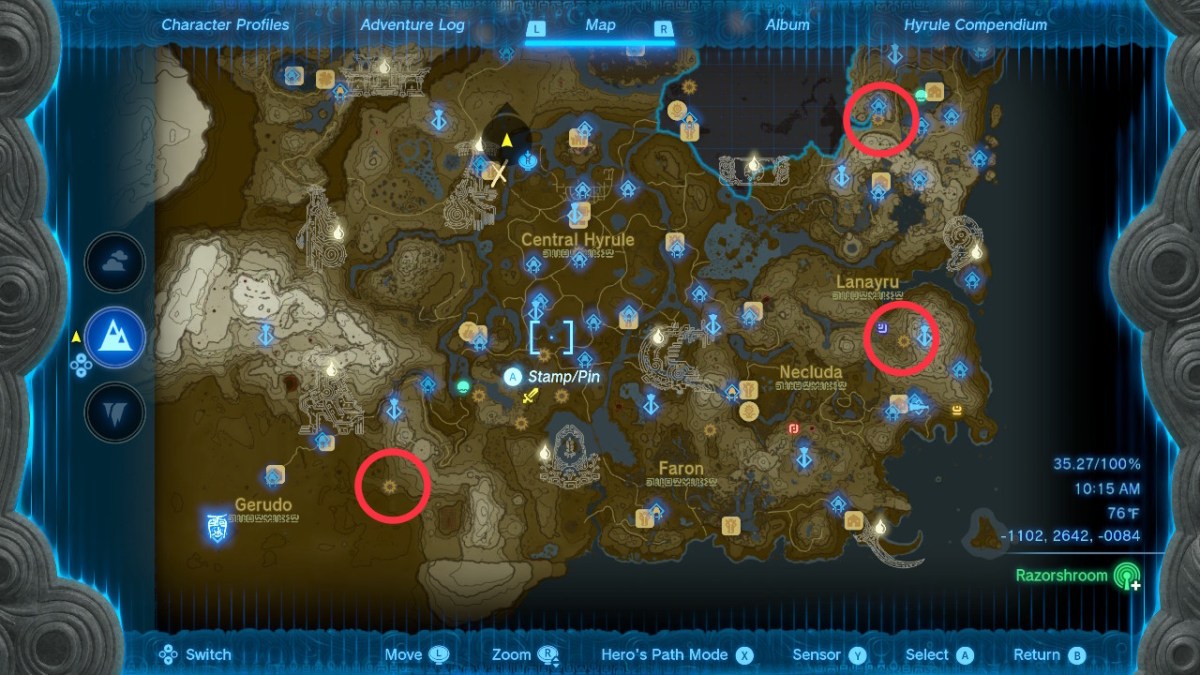 - Statue of Power: South of the North Akkala Valley at 3755, 2672, 0002.