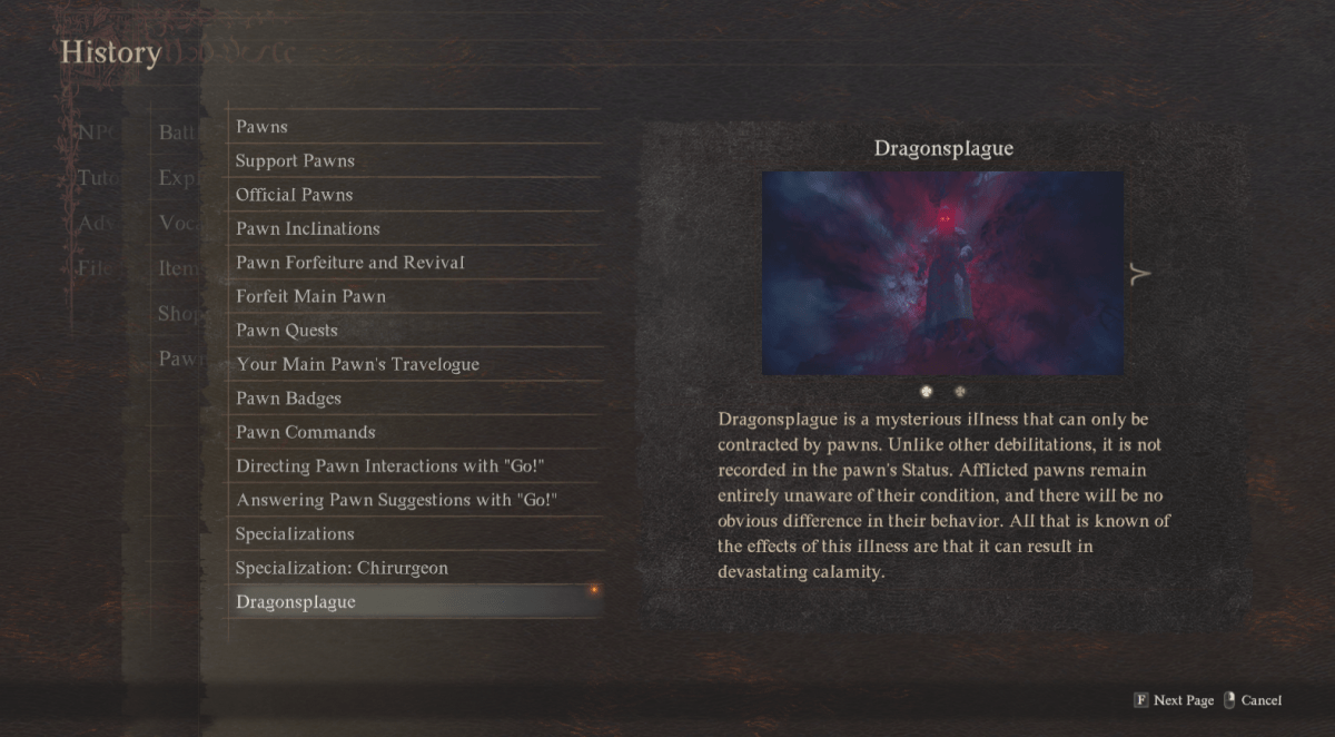 Upon reaching the Riftstone, summon two new Pawns. Keep in mind that Pawns will talk about the Dragonsplague and its symptoms, so you will get a very obvious indication that a Pawn may be sick with Dragonsplague. Now, once you have summoned these two new Pawns, travel around with them for a little bit before dismissing them. Summoning new Pawns does risk pulling other Pawns that have Dragonsplague into your game, but just look for the symptoms as explained above, and if you see your Pawns acting a little strange, don’t be shy to dismiss them before they lose control and go berserk. The worst-case scenario is that the Pawn loses control of a town and kills NPCs.