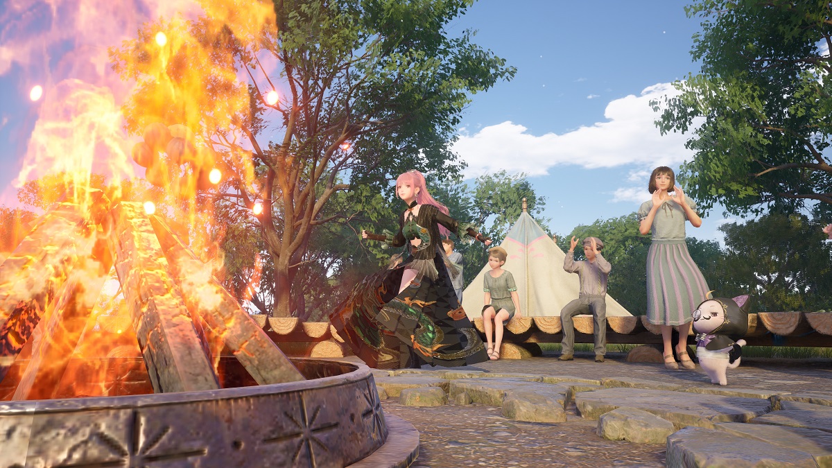 Once you have landed on the shores of the new Isles, you will want to walk straight ahead until you come across a gazebo, which will light up in the evening hours. You should be at the Sizzle & Spark Center and find a warp spire to the left of you. Walk in the left direction, and you will now see a campfire where multiple people are dancing. If you talk to any of the individuals dancing at the campfire, they will give you four dance moves so you can join in on the fun at the fireworks dance party. We have provided a screenshot of the exact location above, which will hopefully prevent you from getting lost.