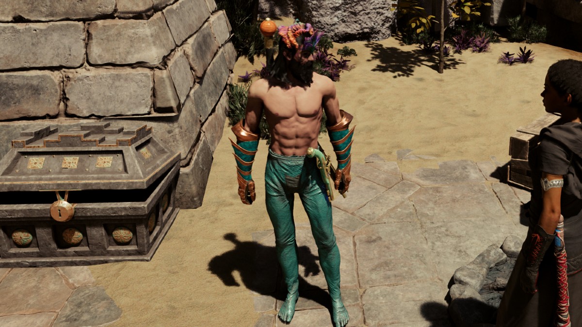 Since armor in Avowed consists of a single slot, the Necropants are literally a pair of paints, causing your character to become topless when equipped. They also (cosmetically) override any boots you’re wearing for a delightful blue-toe look.