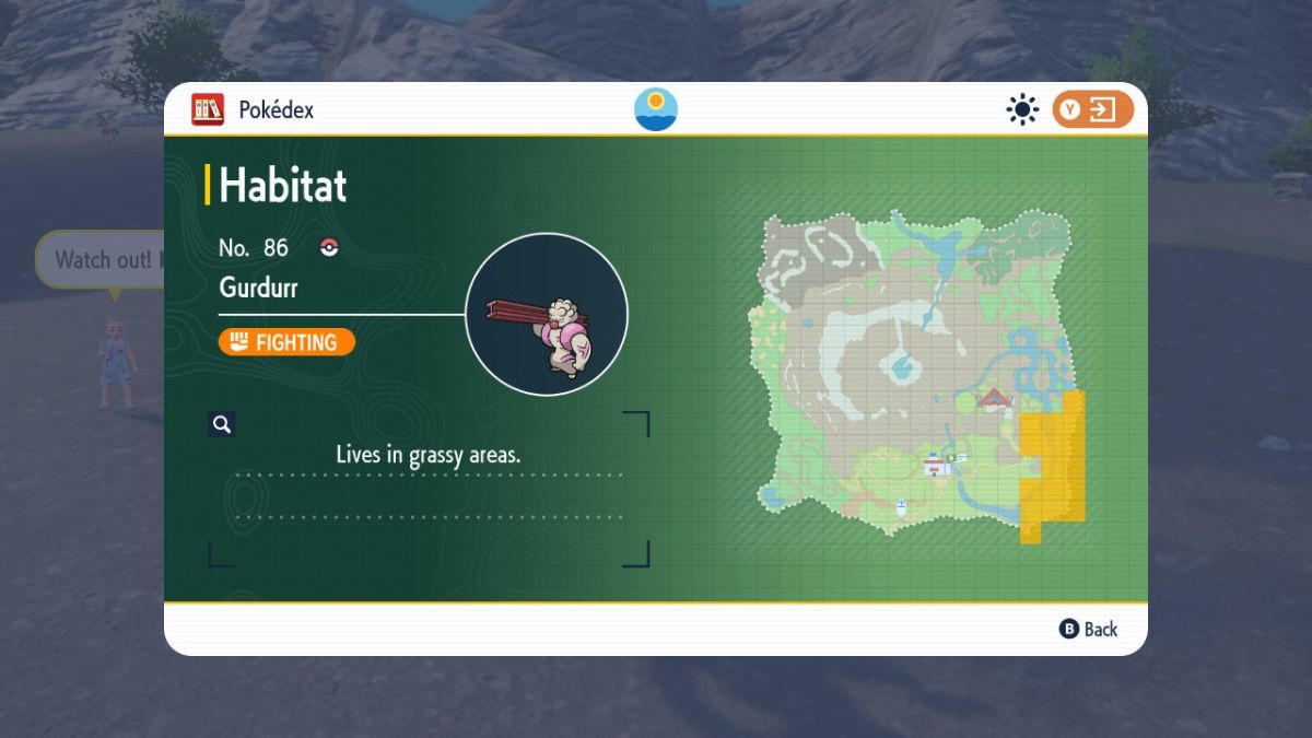 Alternatively, you can evolve Timburr into Gurdurr at level 25. If you don’t have a Timburr, you’ll either need to trade for one or catch one in the wild in The Teal Mask DLC. The best place to catch a Timburr in Kitakami is in Paradise Barrens.