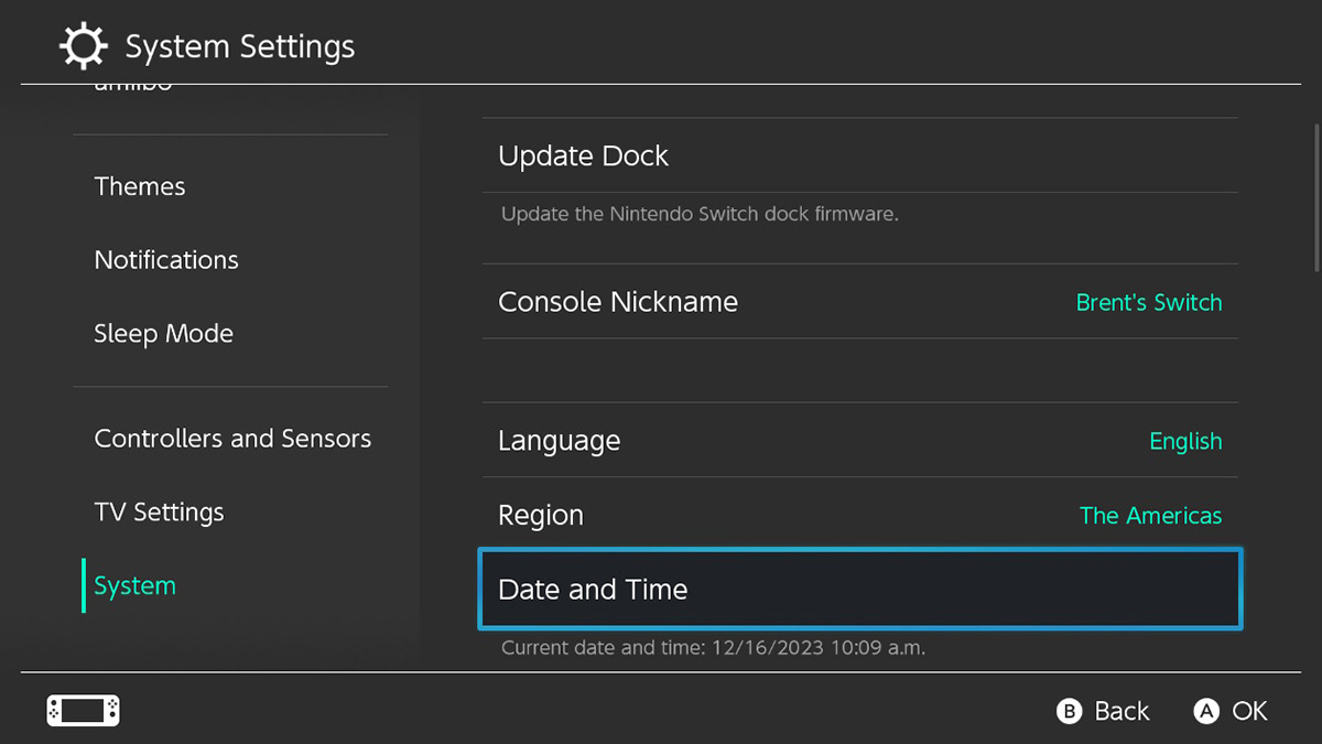 - While on the System Settings page, scroll to the bottom System tab and select Date and Time.