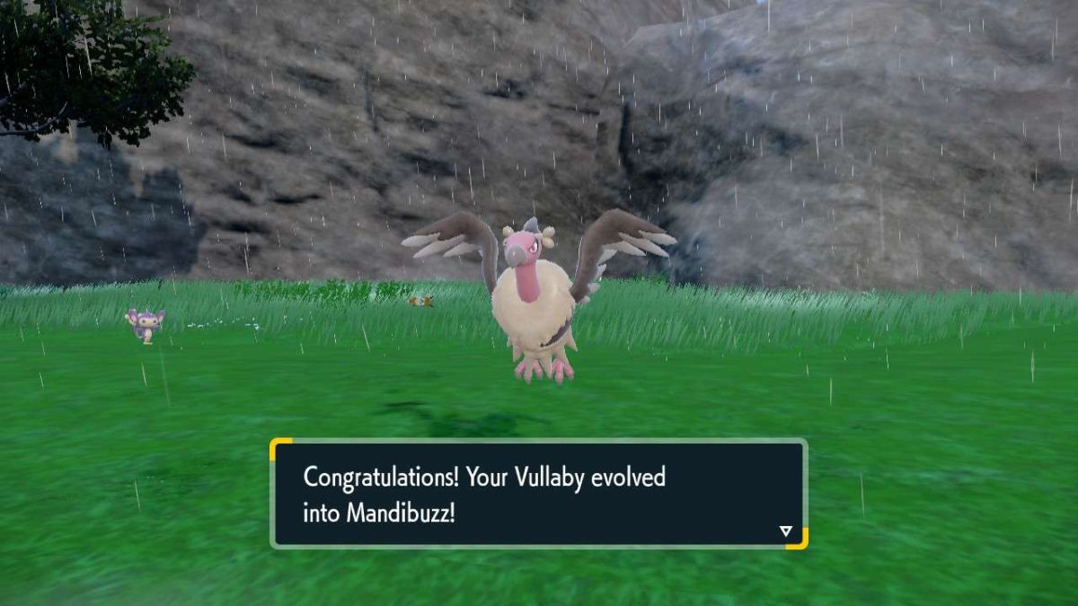 Evolving Vullaby into Mandibuzz in Pokemon Scarlet and Violet doesn’t take any special evolution methods like other Pokemon, such as Nosepass. That said, you’ll have to put the work in to trigger the evolution because in order to evolve Vullaby, you need to get it to level 54. Once it reaches it, the Pokemon will automatically evolve into Mandibuzz.