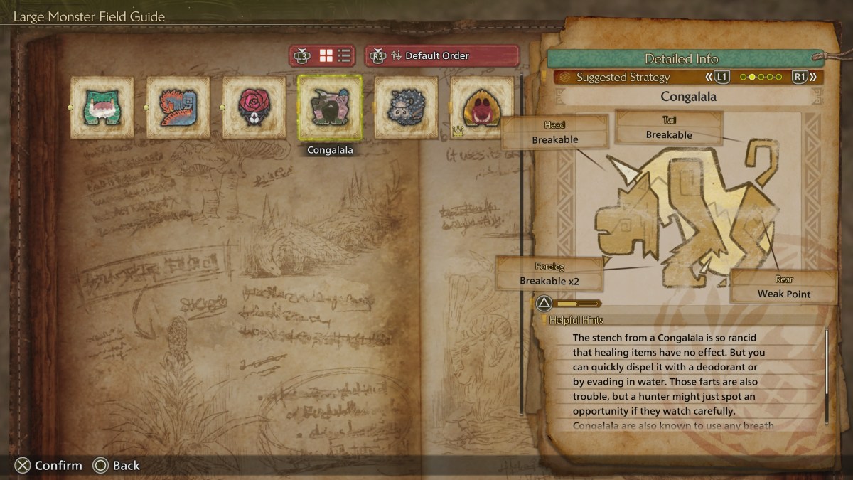 Another bit of good news when it comes to a Congalala is that it’s very easy to get many of its parts. You’re going to have no trouble getting Congalala Claws or Congalala Pelts. (Both also drop if you break its forearms or tail.) They’re super common. The Vibrant Pelt is harder to get, and I found I only ended up with one if I focused on breaking its head. The Congalala Certificate also is a once-per-fight drop. The thing I had the most trouble getting was Congalala Fang, but I usually ended up with one when carving up the carcass at the end of a hunt.