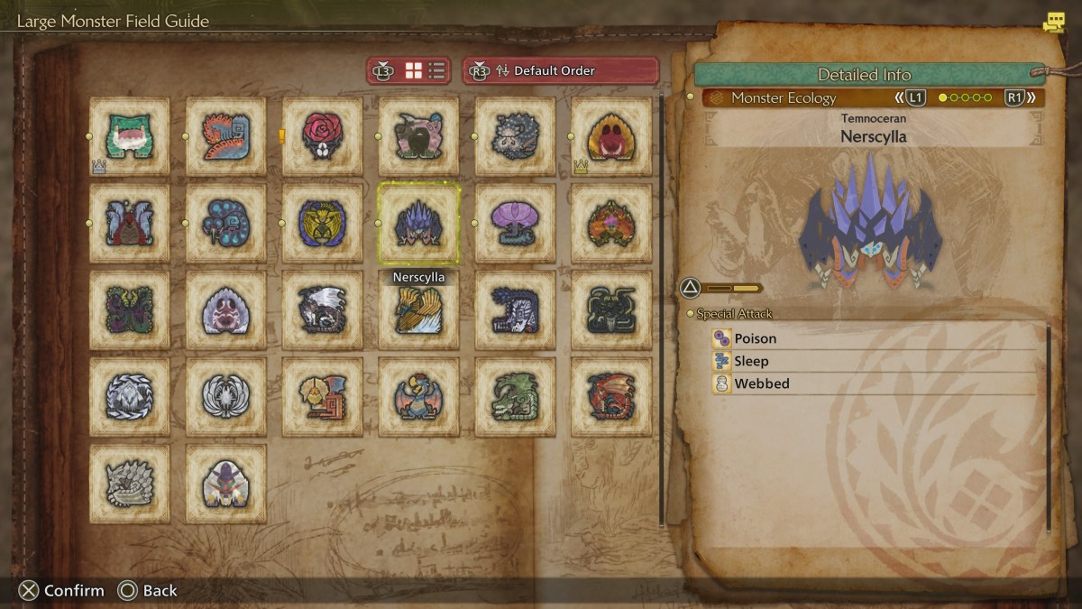 Like Lala Barina and other spider monsters in the series, Nerscylla is very agile. It will strike with a stinger, and use its pincers and claws to strike. One of its most common moves is to first shoot out webbing to cause the Webbed status effect to leave you immobile. It will then typically attempt to poison or put an opponent to sleep. Then, it’ll come in close for attacks.