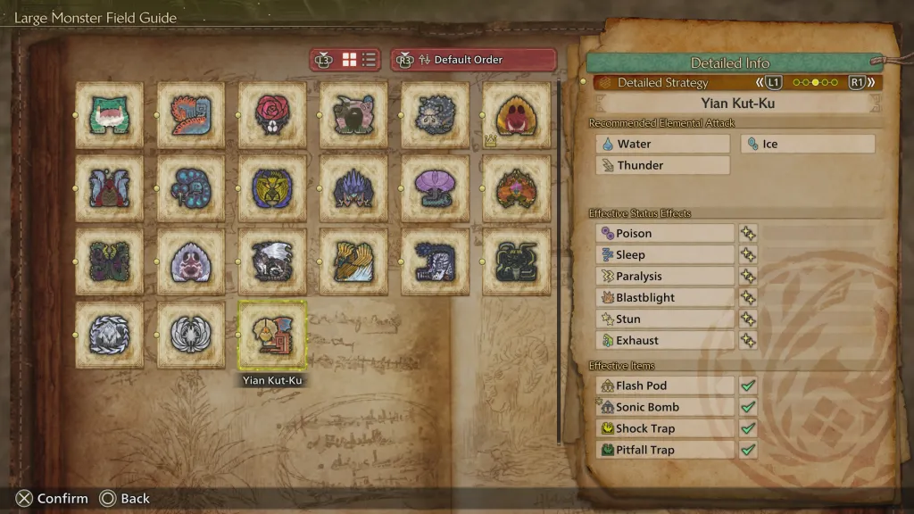 Another reason Yian Kut-Ku is no big deal is because of how many weaknesses you can exploit. Multiple parts of its body are weak against Ice, Thunder, or Water-based attacks. Every time of damage has at least three stars worth of effectiveness against its body parts. You can inflict every kind of status effect on it. Also, all items work on it, including the Sonic Bombs that usually are only practical for Balahara.
