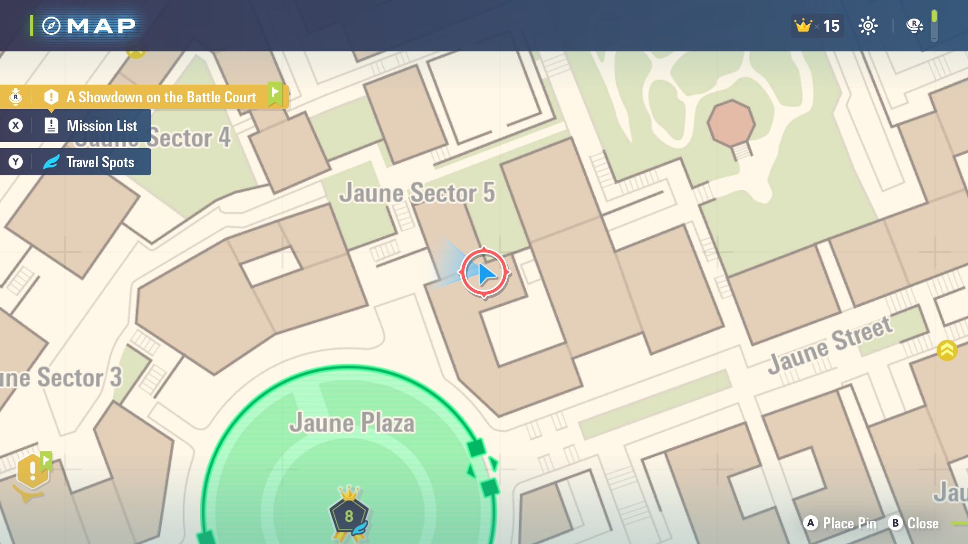 The most reliable and easy-to-reach spawn is not far from Jaune Plaza and Wild Zone 8. There’s a building to the northeast of it that has a spot where there’s a normal rooftop patio, but then another part that’s slightly lower. The Dratini will always spawn in the garden there, so you can sneak up behind it and strike with a Poke Ball from above.