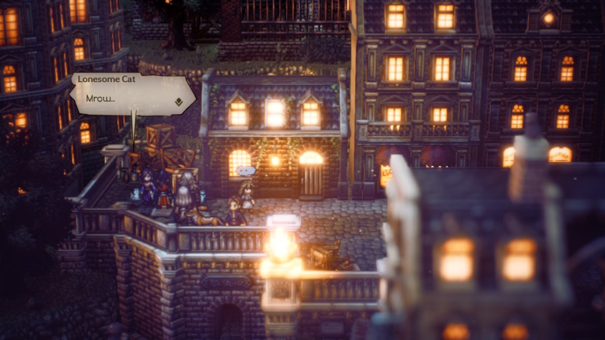 Take the man to the Clockbank Industrial District and head all the way left on the same street the inn is on. Walk all the way to the left, where you’ll see a lone white cat. Talk to it while the Haggard Man is in your party. You’ll see a brief scene play out. You’ll be given 12,000 leaves and Cait Powder as a reward for completing “My Beloved Catharine” in Octopath Traveler 2. You’ll also only see Catharine’s Owner with her back there from here on out. Octopath Traveler 2 is available for the Switch, PS4, PS5, and PC. A demo is available.