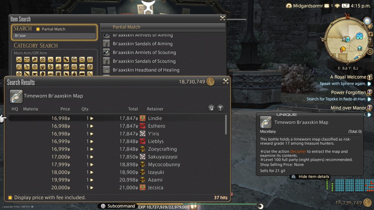 Since the Market Board may not always have this specific hairstyle in stock, for the reasons mentioned above, players will have to get it through other means. More specifically, you need to do the new Br’aaxskin Treasure Maps. You can get treasure maps through gathering or through the Market Board, where they are pretty cheap.