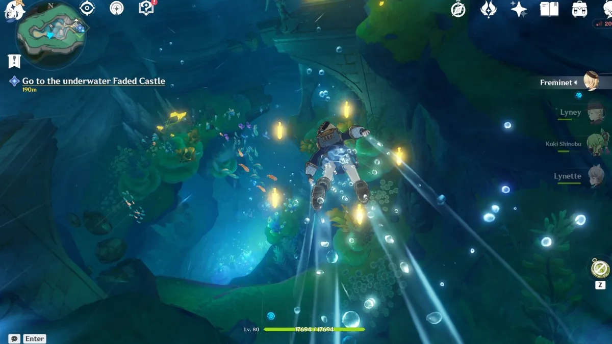 Dive down the tunnel and take the water current towards the area known as the Faded Castle. There will be a Teleport Waypoint you can unlock once you enter the Faded Castle.