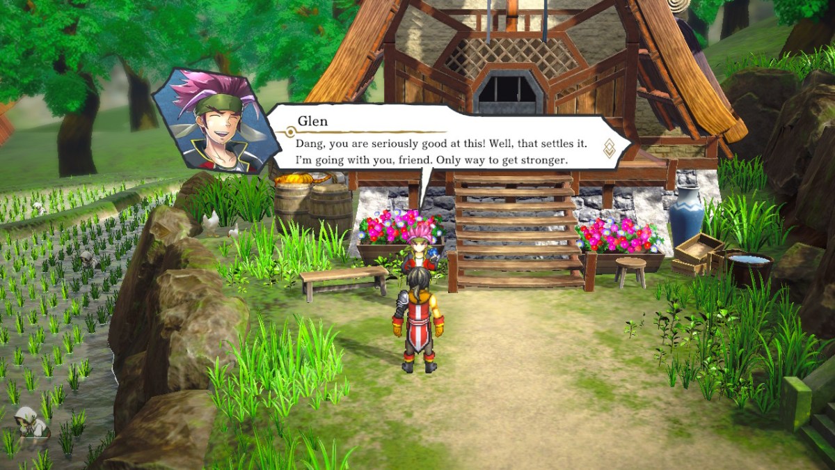 Glen is just there to open the card shop in the Trading House in your town. He won’t help as a support character. Still, if you like extra minigames, it helps to get the card game in Eiyuden Chronicle. Plus, you get a major population boost from opening his store.