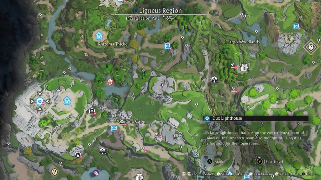 Wood and stone are very common materials that you should easily be able to pick up from the open environment. The other two are a bit more specific. A good place to get the Great Treet Root is by breaking Wizenend Wood, which can be found at the Great Tree Tendrils. Scrap fabric can be found by picking up golden wheat. If you’re near the beginning of your adventure and haven’t unlocked too many areas, you may struggle to find this item as it’s more readily available later. However, we saw golden wheat in a small building near the Dux Lighthouse. We will place a screenshot of the location on the map above for reference.