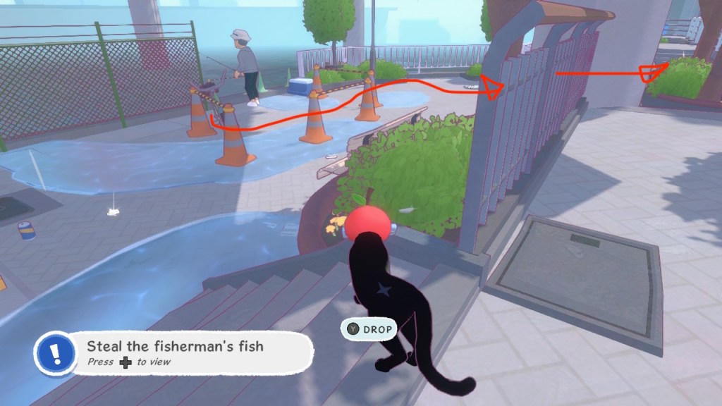 Most of the fish in Little Kitty, Big City aren’t too difficult to get, but the fisherman’s fish is a challenge due to all the water around him. While a part of getting away with the fish is becoming comfortable with the zoomies dash, knowing the right spots to wait and go are helpful.