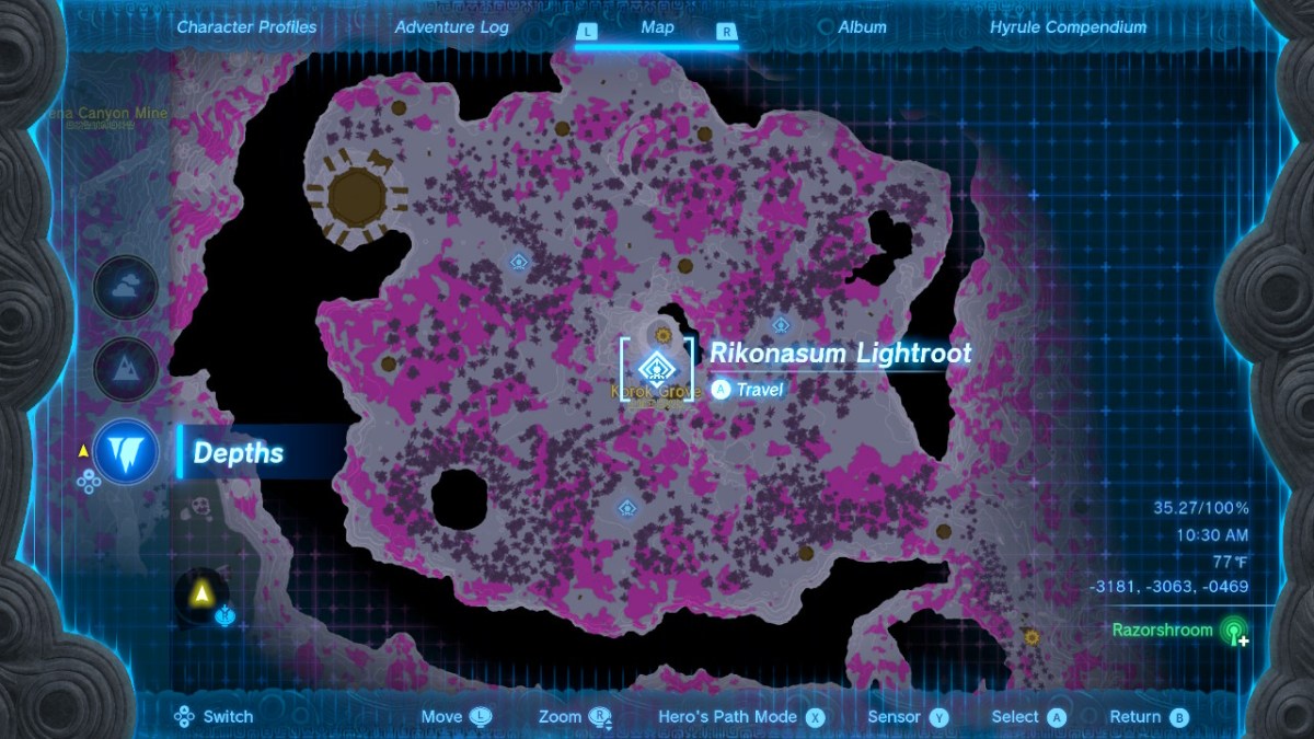 To get through the Lost Woods in The Legend of Zelda: Tears of the Kingdom, you’ll need to go under the location. With the addition of the massive Depths area in this game, the entire map of Hyrule is reflected underground, including the Lost Woods, where the Master Sword used to be. To do this, head to the Minshi Woods Chasm southeast of the Korok Forest. From there, dive in and head northwest until you reach the Rikonasum Lightroot. Alternatively, you can just mark where the middle of the Lost Woods is on the map and head to that spot. Here, you’ll find a small set of stairs that lead to a platform with a stone slab above you. Ascend into that slab and you’ll arrive in the Korok Grove, right in the middle of the Lost Woods.